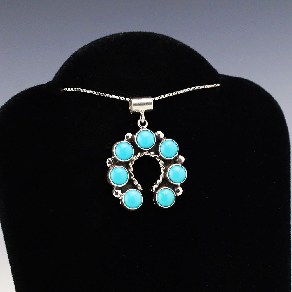 Lovely naja pendant hand made out of sterling silver and Turquoise by Navajo artist Martin Perry. A timeless beauty that you will enjoy for years to come. Weighs 4 grams. Signed (Chain not included)