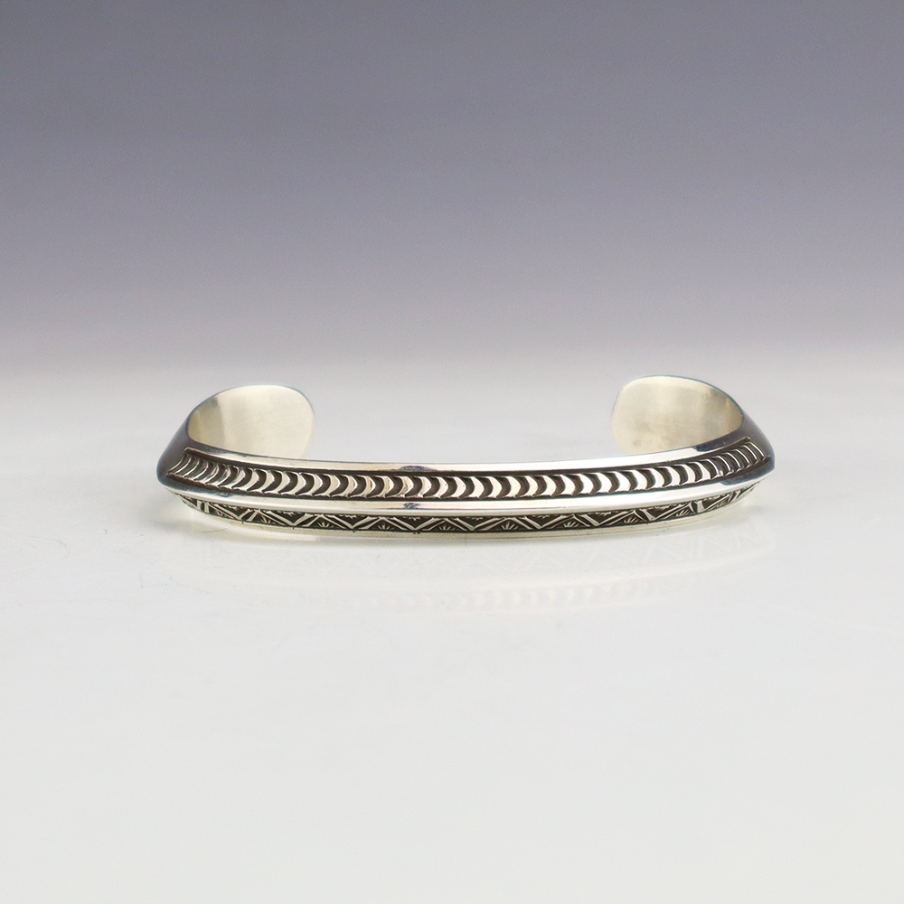 The Navajos began working with silver in the 19th century, and began making things like buckles, bridles, buttons, rings, canteens, hollow beads, earrings, crescent-shaped pendants (called “najas”), bracelets, crosses, powder chargers, tobacco canteens, and conchos (for belts). Their silversmithing skills has evolved and changed throughout the years, and in about 1880 Navajo silversmiths started to set turquoise in their silver work. Traditionally, Navajo artists worked with jewelry techniques like repousee and stamp work, but today they explored in other Native American jewelry making techniques like Zuni inlay work and Hopi overlay work