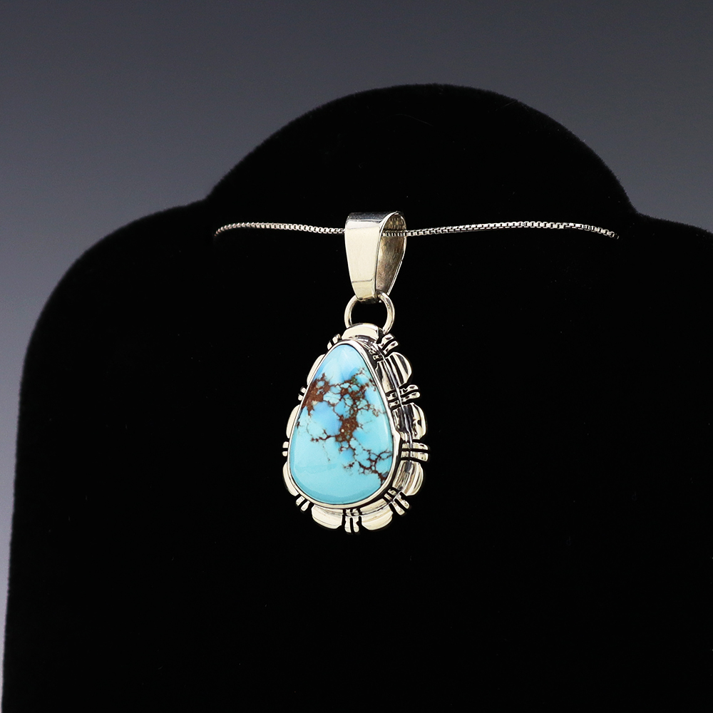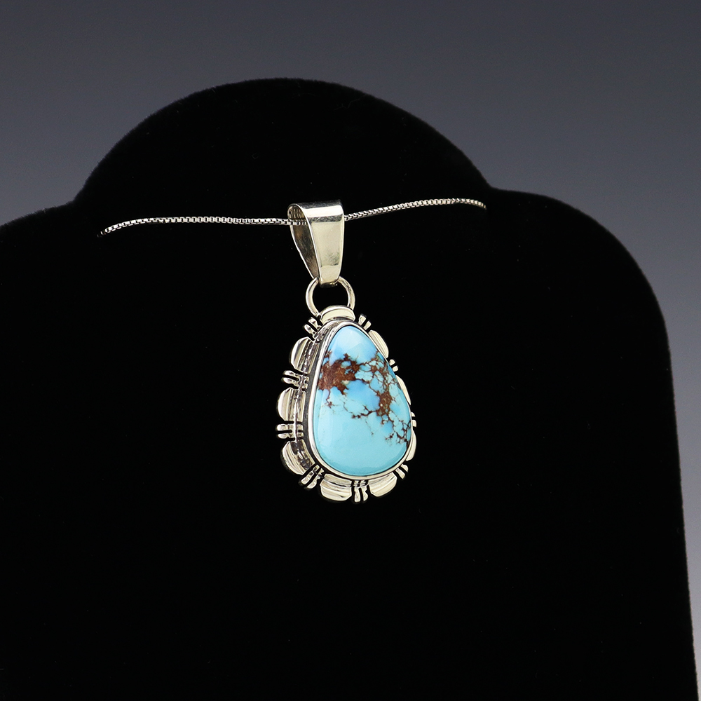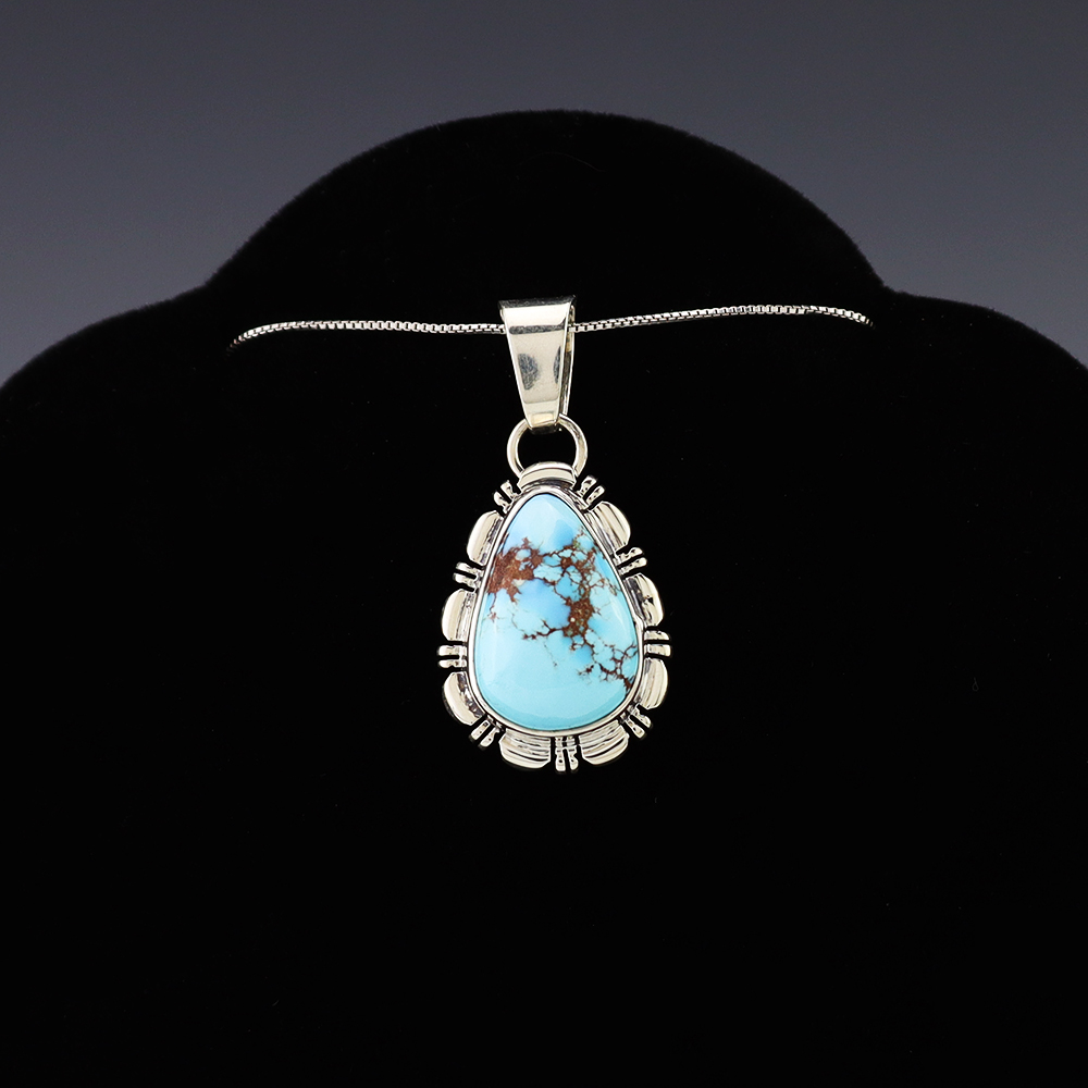 NATIVE AMERICAN NAVAJO STERLING SILVER & TURQUOISE NECKLACE BY GARY CUSTER