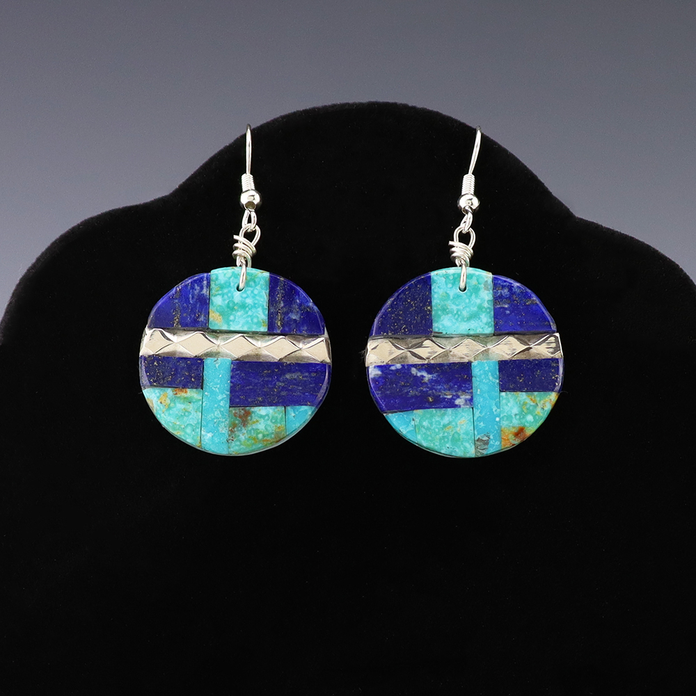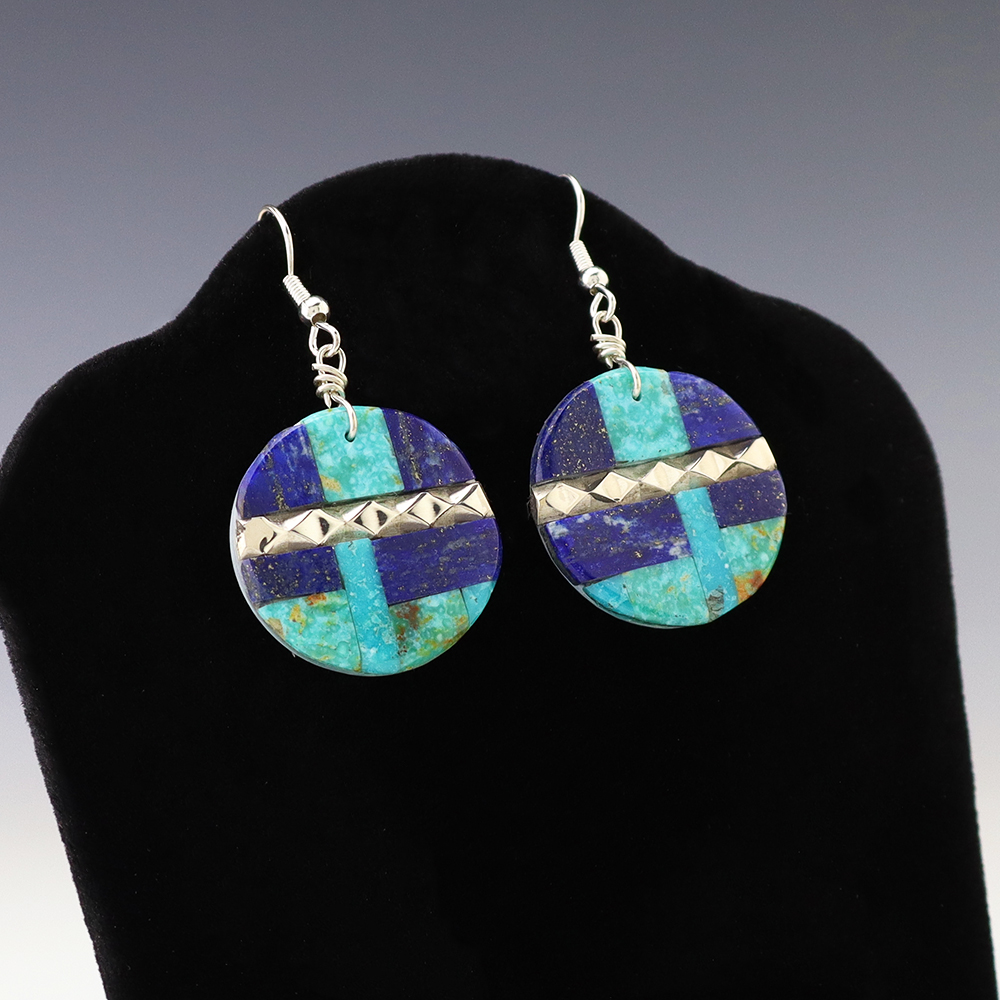 NATIVE AMERICAN ZUNI TURQUOISE EARRINGS BY NANCY & SHELDON WESTIKA