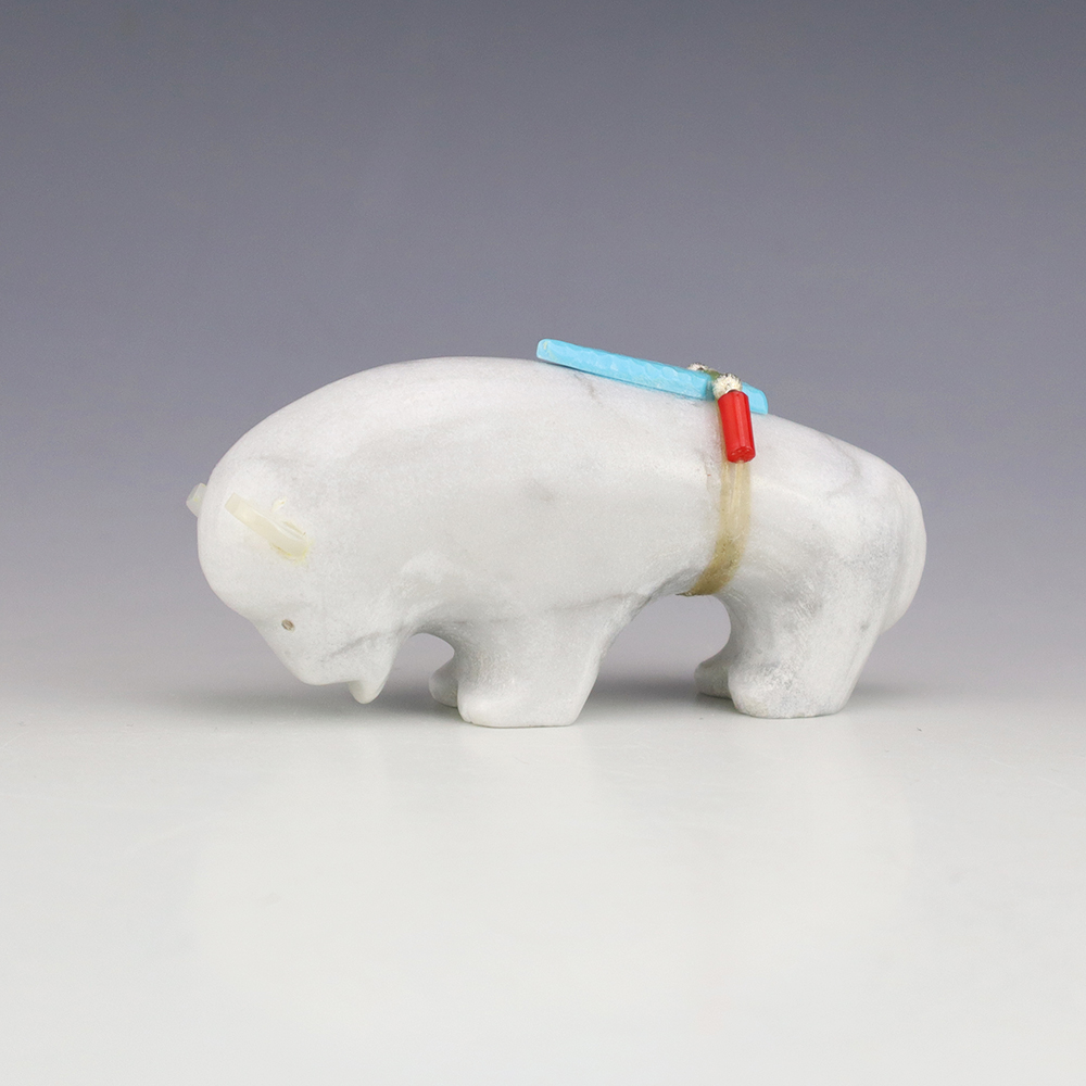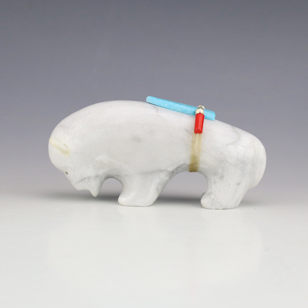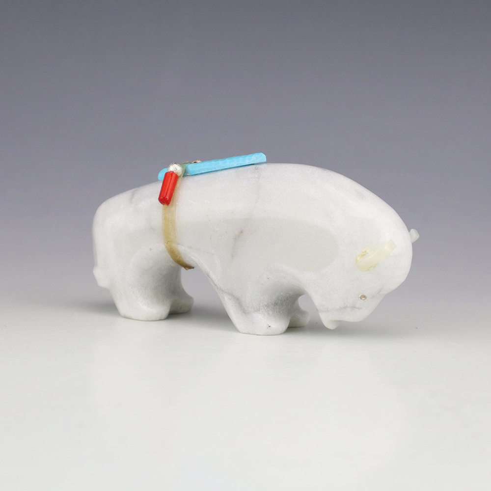 Zuni fetishes are carvings made from various materials by the Zuni people. Traditionally, fetishes served a ceremonial purpose for their creators and they represented animals and figures that were part of their culture. Today, as a form of Native American Art, they are sold to collectors worldwide. With a myriad of materials like turquoise, shell, jet, marble, serpentine, and much more, Zuni fetish carvers are able to create carvings in a style of their own.