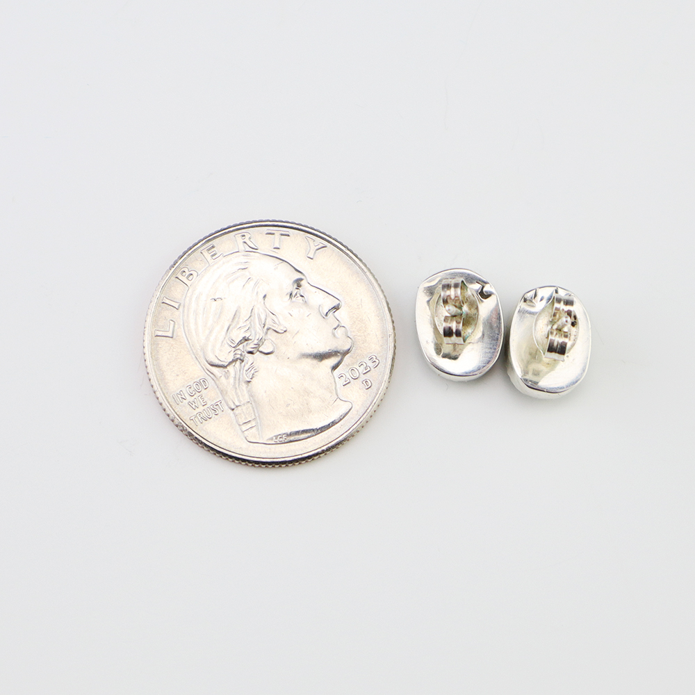 Zuni artist, Diane Lonjose created these lovely earrings. Made out of sterling silver and set with natural Carico Lake Turquoise. The components are all hand fabricated and the stones are all natural. Diane comes from a family of Zuni jewelers. She is the daughter of Alice and Duane Quam, and grandchild of Doris and Wayne Ondelacy. Weighs 2 gram. Signed