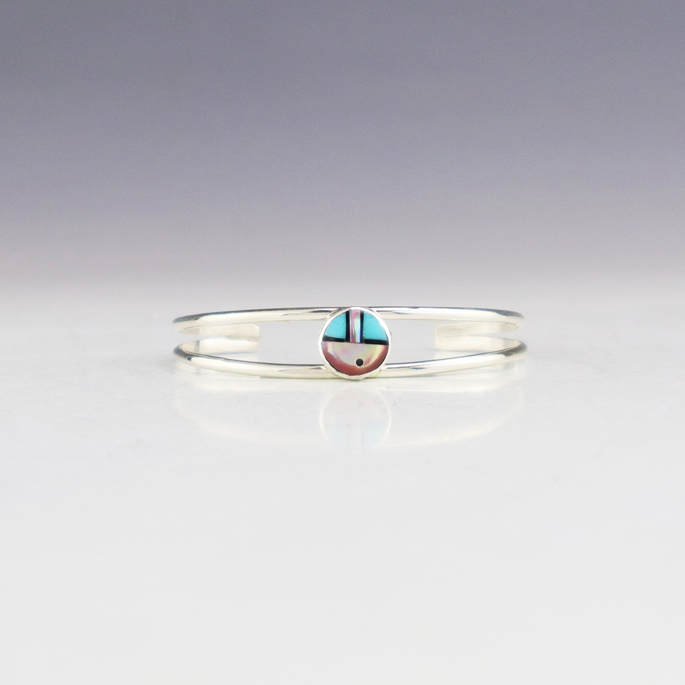 Lovely hand beaded baby bracelet with by Charlene Jackson. Great patterns and colors! The entire inner circumference is about 4 7/8″ including opening of 5/8″. The bracelet is beaded over copper, so you adjust the size. 1/2″ wide When trade beads were introduced to Native Americans, they made these colorful...