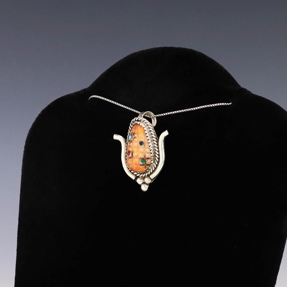 Navajo silversmith Will Denetdale made this outstanding pendant. Great Rhodochrosite stone, that is surrounded by great silver work. A timeless beauty that you will enjoy for years to come. Weighs 6 grams. (Chain not included) Signed 3/4” wide x 1 3/8” long Artist card included The Navajos began working with...