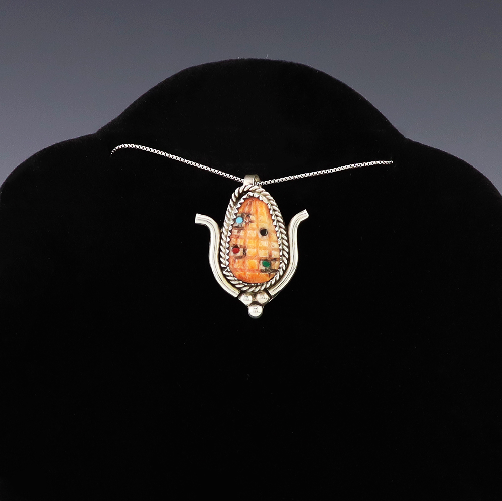 NAVAJO STERLING SILVER & RHODOCHROSITE PENDANT BY WILL DENETDALE