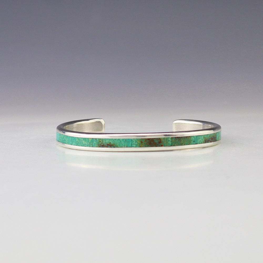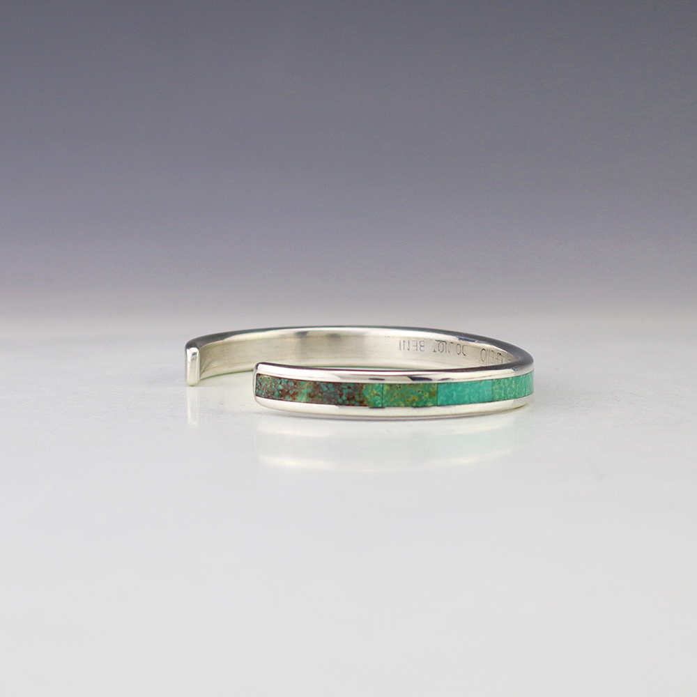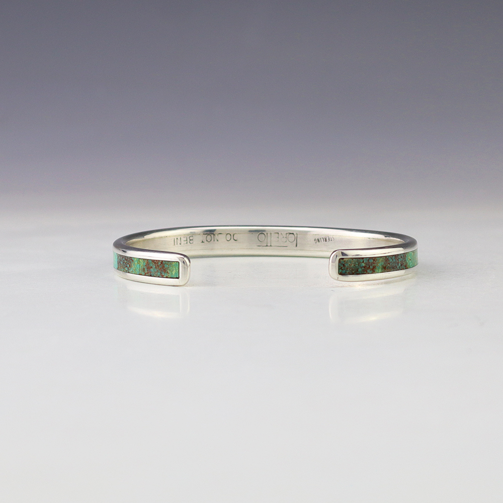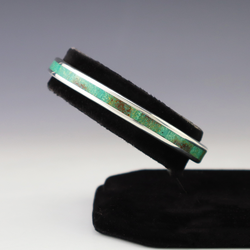 This bracelet will be a delight to wear, as well as a good representation of the fine craftsmanship of Edmund Cooeyate. Edmund is known for his fine needlpeoint work. This gorgeous bracelet is made out of sterling silver and Turquoise. Weighs 14 grams. Signed. The entire inner circumference is about...