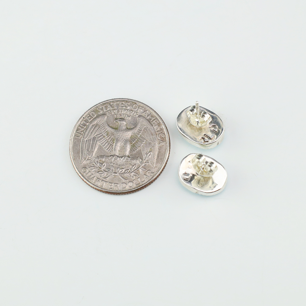 Zuni artist, Diane Lonjose created these lovely earrings. Made out of sterling silver and set with natural Kingman Turquoise. The components are all hand fabricated and the stones are all natural. Diane comes from a family of Zuni jewelers. She is the daughter of Alice and Duane Quam, and grandchild of Doris and Wayne Ondelacy. Weighs 2 gram. Signed
