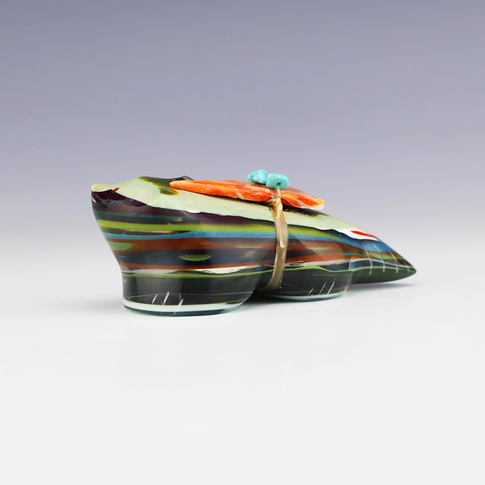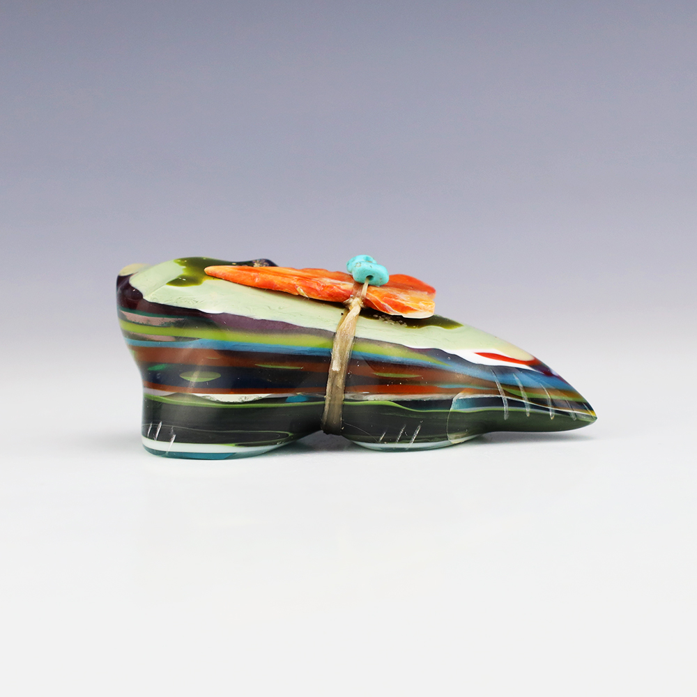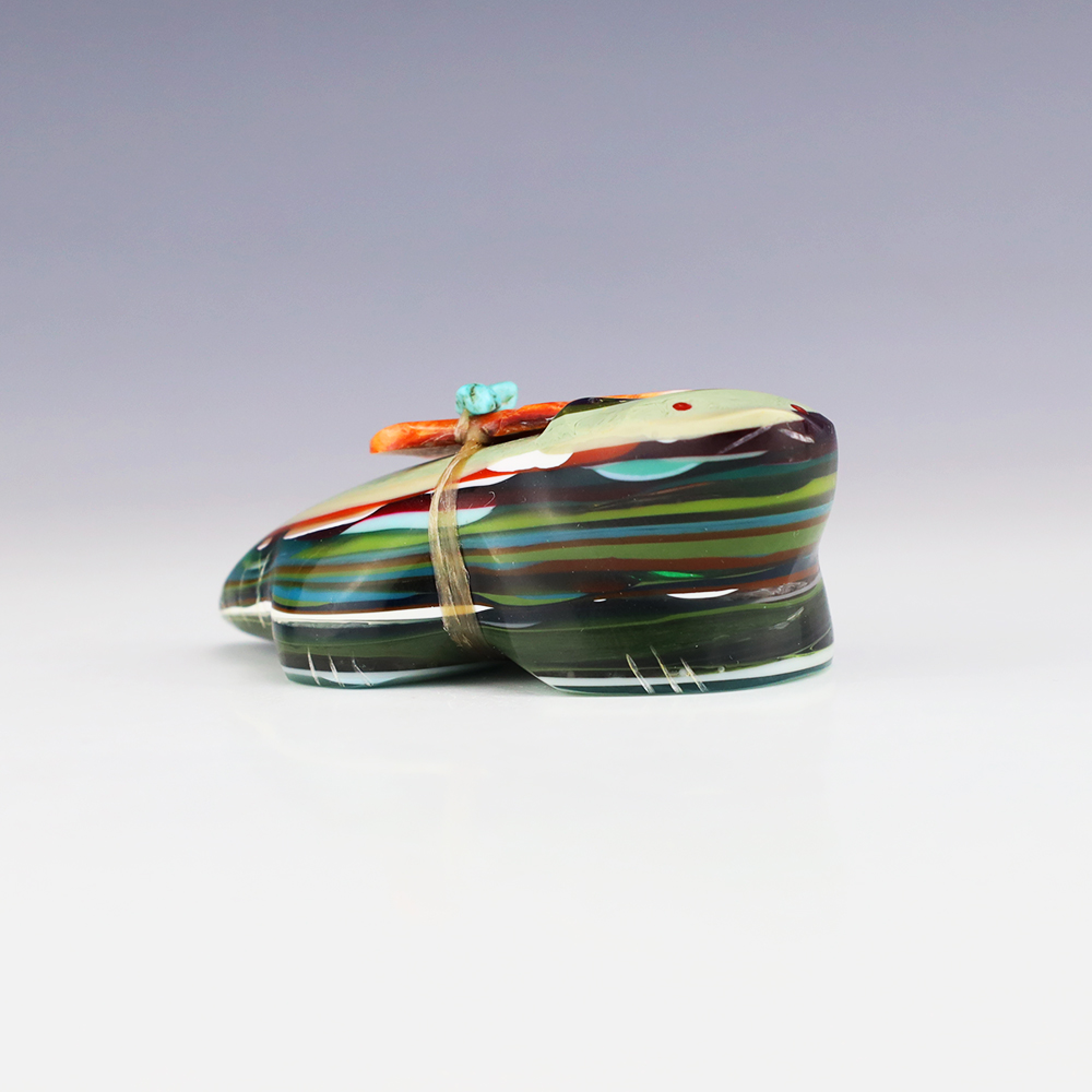Zuni fetishes are carvings made from various materials by the Zuni people. Traditionally, fetishes served a ceremonial purpose for their creators and they represented animals and figures that were part of their culture. Today, as a form of Native American Art, they are sold to collectors worldwide. With a myriad of materials like turquoise, shell, jet, marble, serpentine, and much more, Zuni fetish carvers are able to create carvings in a style of their own.