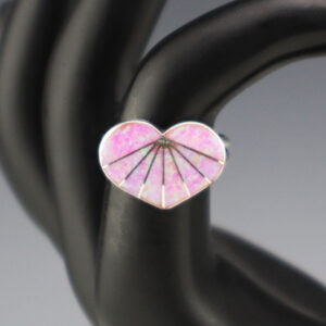 These lovely heart earrings are made out of sterling silver and inlaid with Pink Mussel. Weighs 2 gram. 1/2” wide x 3/8″ long Zuni Pueblo is the largest pueblo in New Mexico, and because of its location, Zuni is the most traditional. Continuing to make jewelry, fetishes, and pottery, most...